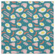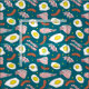 Tissu bleu foncé avec une nourriture amusante motif de petits-déjeuners frits oeufs, bacon et saucisses