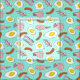 Tissu bleu clair avec une nourriture amusante motif d'oeufs au plat, de bacon et de saucisses