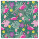 Tissu Pickleball tropical avec flamants, vert