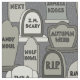 Soyez prêt pour de l'amusement éffrayant avec les pierres tombales de Halloween sur ce tissu. Les pierres tombales ont des noms comme "I.M. Scary", "automne Webb", "goule de sucrerie", "hurlement de loup", Jack O. Lantern", et plus, aux nuances du gris. © original Anne Coffey d'art.