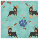 Joli dessin animé Miniature Pinscher avec un éparpillement d'os et de pistes de pattes. Cette conception est destinée à la tuile de manière transparente.