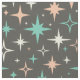 Step back in time with this fun 1950s style atomic star mid century fabric. With cool turquoise, pink, and pale yellow stars on a brown background, it's sure to add a pop to your sewing project.