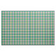 Tissu avec un motif plaid original Plaidwerx dans le vert de mer clair, le citron vert et violet, avec des reflets orange clair et crème. Le motif répète tous les 7/8". Commande spéciale à grande échelle via https://plaidwerx.com/contact.htm