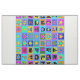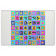 Alphabet Play Mat, Alphabet quilt, 56x56, rouge bleu vert, jaune rose turquoise, pastels orange citron vert, piquets, courtepointe contemporaine, symboles de l'alphabet, Virginia Vivier, Vagabond Folk Art, Southwest folk art, décoration boho, art indie.