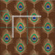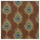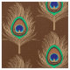 Tissu Plumes de paon, chameau Tan sur brun chocolat