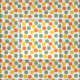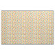 Ce tissu a un design géométrique de points en corail, or et vert sauge.
