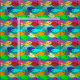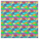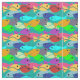 Ce tissu a un design d'école de poissons en vert, bleu, orange, jaune, rouge, rose et bleu-vert nageant dans l'océan.