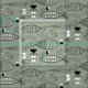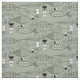 Tissu d'art moderne du milieu du siècle en noir et blanc sur un arrière - plan vert céleri. Poisson lunaire de différentes formes et de multiples abstractions.