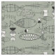 Tissu Poisson du milieu du siècle Art noir blanc vert