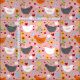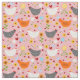 Tissu Poulets dans le jardin avec fleurs rose