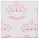 Ce tissu mignon comporte un motif des couronnes roses de princesse ornées avec des coeurs sur un arrière - plan blanc. Personnalisez facilement ce tissu en ajoutant un nom ou tout autre texte dans la boîte fournie. La couleur d'arrière - plan et la couleur de police peuvent également être changées en la cliquant sur sur la personnaliser.