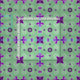 Formes complexes largement espacées sur arrière - plan bleu. La fleur de lis est la forme d'ancrage de ce design. La figure classique en trois points est équilibrée avec un arrangement de quatre étoiles pointes et de fleurs. Les formes sont principalement violettes. Le arrière - plan est un motif vert.