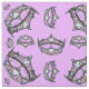 Tissu Queen Hearts Silver Crown Tiara motif rose lilas