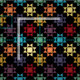 Ce tissu est conçu pour ressembler à une courtepointe Amish avec un bloc de courtepointe Ohio Star imprimé en rouge, violet, bleu, jaune, or, orange et vert contre un arrière - plan noir.