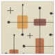 Ce design moderne d'inspiration atomique du milieu du siècle présente des lignes audacieuses et des formes géométriques dans les tons orange et jaune