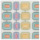 Ce tissu a un design moderne du milieu du siècle de rectangles concentriques aux couleurs rétro.