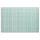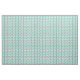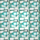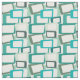 Ce tissu a un design moderne du milieu du siècle de rectangles biaisés avec des trous blancs dans les tons bleu-vert.