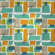 Tissu Rectangles turquoise orange verte mi-siècle