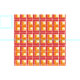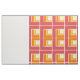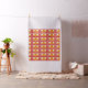 This fabric has a geometric design of L's in red, orange, and yellow, placed in different directions on a field of white.