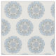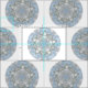Ce tissu a un cercle de dentelle de conception d'abrégé sur bleu dans une copie de répétition qui est non directionelle. Le résumé ressemble à un flocon de neige. Bleu-clair avec des accents gris bleuâtres.