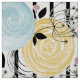 Fleurs rétro, abstraites, fleurs rétro, roses, roses rétro, abstrait, rayé, bleu, noir, jaune, vert