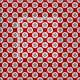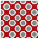 Rétros points avec une frontière contrastante, basée sur un classique, motif moderne de tapisserie d'ameublement de la moitié du siècle - gris argenté/points gris encadrés dans le blanc sur un arrière - plan profond de rouge de rouge à lèvres