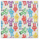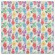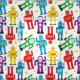 Tissu à motifs coloré pour enfant recouvert de robots et aliens de jouets rétro rouges, bleus, violets, jaunes et verts sur blanc