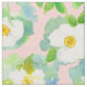 Un joli tissu floral rose vif avec des roses Cherokee blancs peints à l'aquarelle accentués de bleu doux et de feuilles verts et centres dorés.