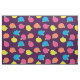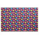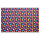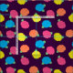 Des roses stylisés en rose néon, bleu, jaune et corail avec des feuilles vert néon sont répartis sur un arrière - plan violet profond pour créer un motif floral amusant.