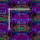 Un crâne de sucre dans les couleurs roses et pourpres au néon.