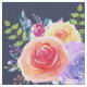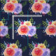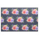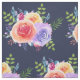 Tissu à motifs avec un joli bouquet de roses aquarellés avec des sprigs, des feuilles et des branches, le tout dans un agencement floral coloré. Arrière - plan bleu marine.