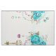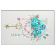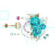 Clé d'or antique aux roses turquoise tendance décorée de feuilles d'or blanc et de perles rose et bleu. Couleur tendance. Rose turquoise. Blanc doré. Tiffany bleu.