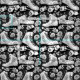 Tissu Roulettes classiques, rose, noir et blanc de