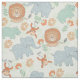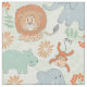Lion mignon, Hippo, Eléphants et singes se bousculent sur ce motif de jungle pastel aux tons doux pastel blues et orange rouille.