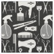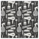 Tissu Salon Chic Rétro Noir et Blanc Outils