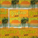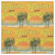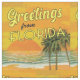 Salutations de Floride dans le style des cartes postales vintages Salutations avec une illustration d'un coucher de soleil sur la plage avec des palmiers. Les couleurs et les polices rétro vives nous ramènent au Vieux Floride. Amusant pour le décor des maisons de plage !
