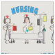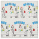 Soignez le tissu, scène d'hôpital avec le lit, IV d'hôpital poteau, IV des sacs, foley, réservoir d'oxygène et deux infirmières. Grand tissu pour des cadeaux d'obtention du diplôme.