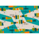 Sets de table abstraits inspirés atomiques modernes de la moitié du siècle dans la sarcelle d'hiver, l'orange et le vert.
