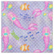 Un tissu de sirène très mignon, avec d'adorables petites sirènes aux cheveux roses et aux écailles roses, nageant sous l'océan avec des bancs de poissons, poissons clowns rayés orange et blanc, petits poissons jaunes et bleus et algues flottantes. Le tout sur un pastel violet/bleu arrière - plan d'écailles de poisson.