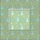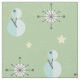 Ce motif rétro du milieu du siècle moderne avec des bonhommes de neige abstraits, des flocons de neige et des étoiles, dans des couleurs vintages de bleu clair et jaune contre un arrière - plan vert défraîchi.