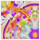 Tissu dans un motif de teinture à cravate en douce, d'inspiration fleurie, teintes rose, vert, pêche et violet
