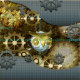 steampunk, vapeur, hibou, mécanique, technologie, vitesses, or, bleu, fibre,