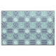 Un motif de carrés turquoise orageux, décoré d'un voilier et d'une ancre blancs, et de carrés bleu marine, agrémentés de chevrons et de vagues bleu pâle, est orné de coutures blanches pour créer une atmosphère nautique classique.
