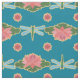 Tissu Stylish Water Lilies and Dragonfly on Blue Fabric