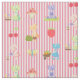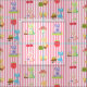 Les Motifs comprennent Sunbonnet Sue dans le jardin sur arrière - plan rayé rose et blanc.