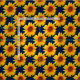 Joyeux tournesols en bleu. Les couleurs complémentaires s'accentuent sur ce tissu.