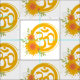 Le symbole de l'OM (ou l'Aum) est important dans des religions orientales aussi bien que le bouddhisme, ce symbole de l'OM est entouré par deux cercles et ensembles contre de beaux fleurs et feuille oranges d'été ! Bouddhisme merveilleux et chemises et cadeau de yoga !