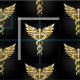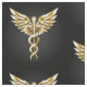 Symboles Caduceus polygonaux or sur arrière - plan noir isolé. Basse poly symbole de la médecine.