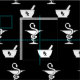 Un tissu fait sur commande comportant deux symboles de signature de pharmacie une cuvette de Hygenia et un mortier et un pilon avec un arrière - plan noir solide.
