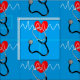 Motif thématique Médicale de stéthoscopes et symboles de la ligne de battement cardiaque dans le design de tissu rouge, bleu et blanc, idéal pour toutes sortes de marques artisanales